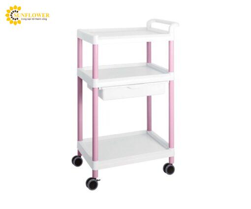 Xe đẩy hàng di động (3 tầng, màu hồng, có ngăn kéo, nhựa PP (polypropylene), ABS, 705 x 447 x 1117mm) AS ONE 3-6644-02 ME32B
