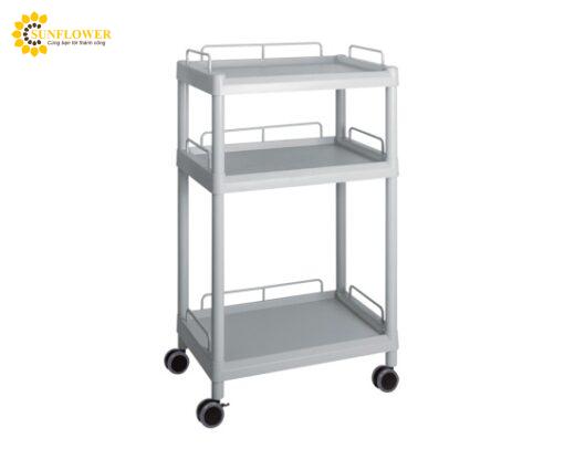 Xe đẩy hàng di động (3 tầng, màu xám, có khung bảo vệ, nhựa PP (polypropylene), ABS, 651 x 447 x 1100mm) AS ONE 3-6643-07 ME32G