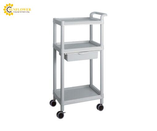 Xe đẩy hàng di động (3 tầng, màu xám, có ngăn kéo, nhựa PP (polypropylene), ABS, 598 x 368 x 1142mm) AS ONE 3-6641-02 ME31B