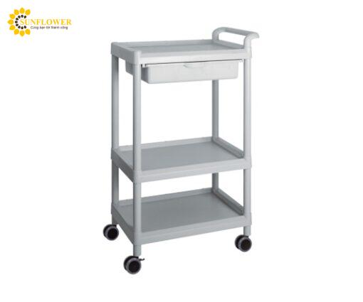 Xe đẩy hàng di động (3 tầng, màu xám, có ngăn kéo, nhựa PP (polypropylene), ABS, 705 x 447 x 1117mm) AS ONE 3-6643-04 ME32D