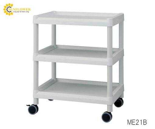 Mô tả sản phẩm ME21B với thiết kế 3 tầng, kích thước nhỏ gọn 645 x 447 x 890mm và trọng lượng 7,5kg. Với chất liệu chất lượng bao gồm khay nướng và ván kệ PP, thanh chống nhựa ABS, bánh xe φ75mm linh hoạt. Bảng kệ hiệu quả kích thước 400 x 500mm, khoảng cách 260mm.