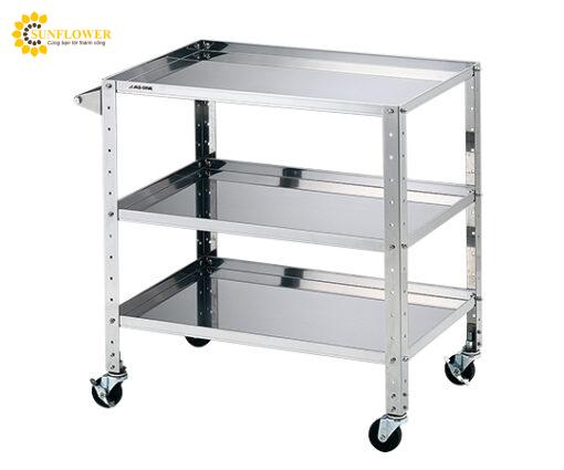 Dòng kệ lớn 3 tầng với kích thước 830 x 510 x 809mm, trọng lượng 21kg, làm từ thép không gỉ SUS430. Có diện tích làm việc 750 x 500mm, bánh xe φ75mm chống trượt, chịu tải 50kg/giai đoạn, tổng tải trọng 150kg. Lắp ráp dễ dàng theo hướng dẫn.