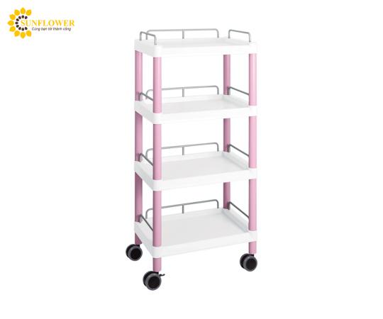 Xe đẩy hàng di động (4 tầng, màu hồng, có khung bảo vệ, nhựa PP (polypropylene), ABS, 540 x 370 x 1160mm) AS ONE 3-6642-09 ME31J