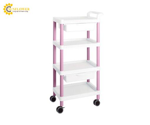 Xe đẩy hàng di động (4 tầng, màu hồng, có ngăn kéo, nhựa PP (polypropylene), ABS, 598 x 368 x 1180mm) AS ONE 3-6642-06 ME31F