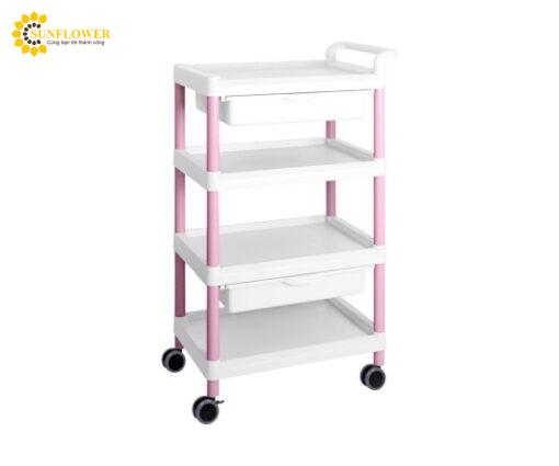 Xe đẩy hàng di động (4 tầng, màu hồng, có ngăn kéo, nhựa PP (polypropylene), ABS, 705 x 447 x 1155mm) AS ONE 3-6644-06 ME32F