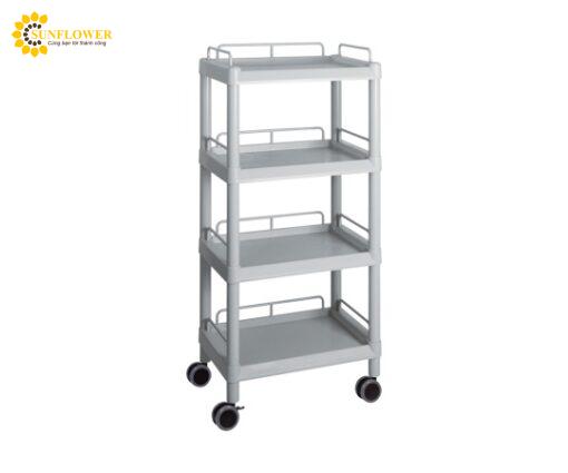 Xe đẩy hàng di động (4 tầng, màu xám, có khung bảo vệ, nhựa PP (polypropylene), ABS, 540 x 370 x 1160mm) AS ONE 3-6641-09 ME31J