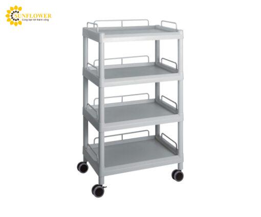 Xe đẩy hàng di động (4 tầng, màu xám, có khung bảo vệ, nhựa PP (polypropylene), ABS, 651 x 447 x 1135mm) AS ONE 3-6643-09 ME32J