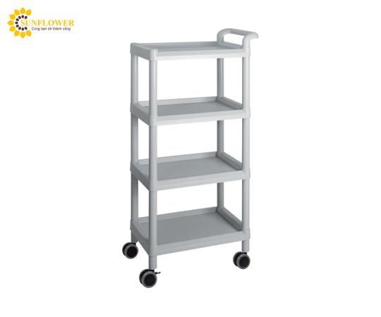Xe đẩy hàng di động (4 tầng, màu xám, nhựa PP (polypropylene), ABS, 598 x 368 x 1180mm) AS ONE 3-6641-05 ME31E