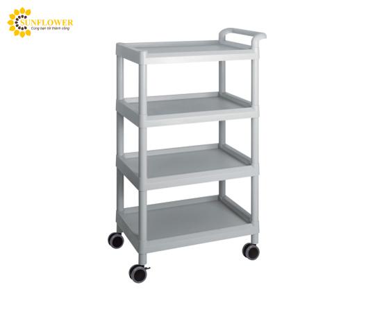 Xe đẩy hàng di động (4 tầng, màu xám, nhựa PP (polypropylene), ABS, 705 x 447 x 1155mm) AS ONE 3-6643-05 ME32E