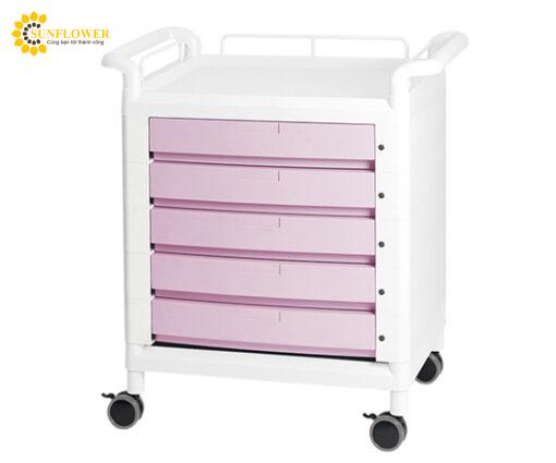 Xe đẩy hàng di động (màu hồng, có ngăn kéo, khung bảo vệ, tay cầm 2 bên, nhựa PP (polypropylene), ABS, 457 x 770 x 830mm) NAVIS D21PHW